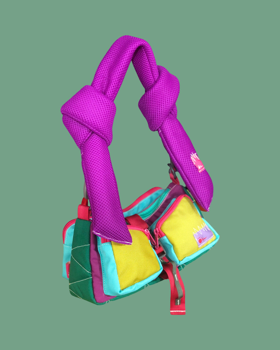 Shaped like a half-moon and designed with movement in mind, Gopi is a compact carry that holds far more than meets the eye. Its standout feature is the padded, knotted shoulder strap, crafted with a 6.5 cm width and 1” fiberfill foam thickness for comfort you can feel. Untie it and the strap extends into a 112 cm padded sling. Fully removable and interchangeable, it pairs with a free utility strap featuring an “anik anik” daisy chain design. Adjustable from 98 cm to 154 cm including the hooks, this strap lets you shift your Gopi from an elegant everyday look to a rugged utilitarian companion, ready for travel, city commutes, or creative styling.